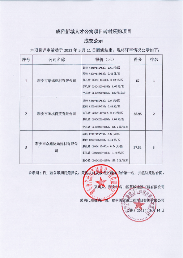雅安市名山區(qū)綜合農貿中心新建項目勞務+機械采購項目招標結果公告...