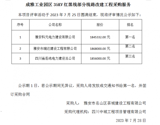 成雅工業(yè)園區(qū)35KV紅黑線部分線路改建工程采購服務(wù)